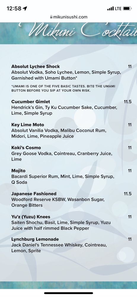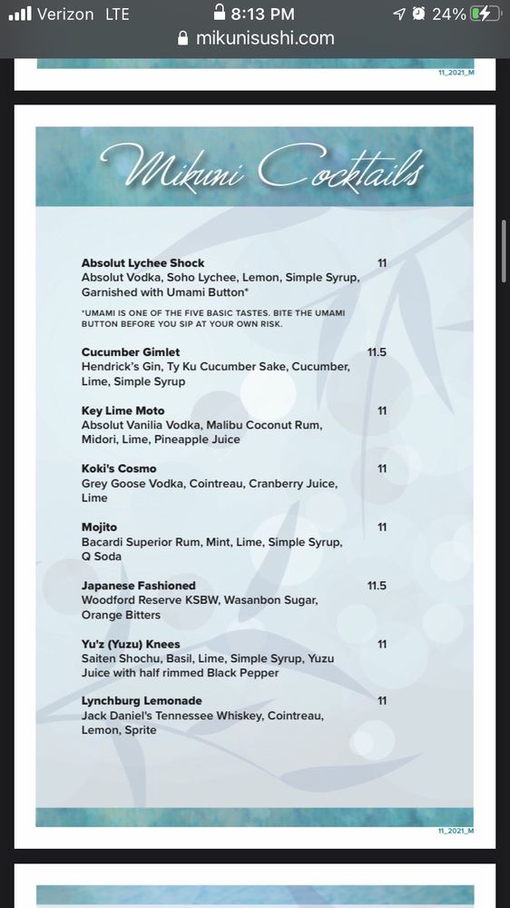 Mikuni Japanese Restaurant & Sushi Bar Menu